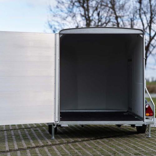 Kofferanhänger Debon Cargo 1300 kaufen: robuste Polyester-Karosserie, Pullman 2 Federung, Tür-/Rampen-System. Ideal für Profis – schnelle Lieferung!
